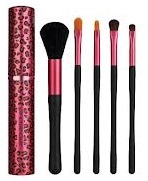 Set includes foundation brush, a lip brush, two eye detailers and a blush/powder brush, case