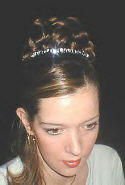 Step 8.) Take the front section that was set aside. Comb to the side of head and fasten with a barrette or hair ornament.